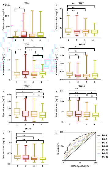 3.2. Carbonyl VOCs in Exhaled Breath of Early Lung Cancer Patients