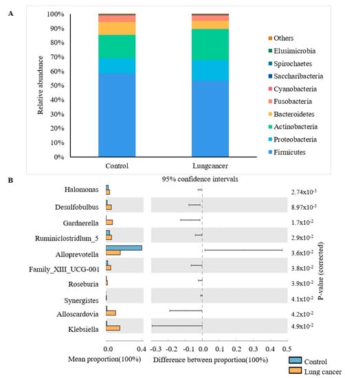 - Zhang, W.; Luo, J.; Dong, X.; Zhao, S.; Hao, Y.; Peng, C.; Shi, H.; Zhou, Y.; Shan, L.; Sun, Q.; et al. Salivary microbial dysbiosis is associated with systemic inflammatory markers and predicted oral metabolites in non-small cell lung cancer patients. J. Cancer. 2019, 10, 1651–1662. [Google Scholar] [CrossRef]