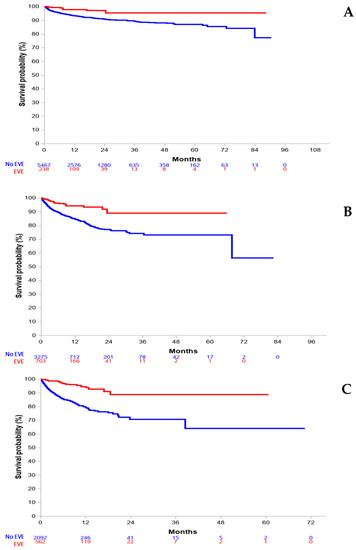 IPTW-adjusted overall survival, according to line of treatment with everolimus. (A) first line; (B) second line; (C) third line and beyond.