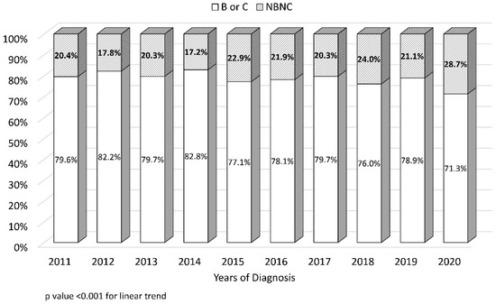 3.2. Trends in Early-Stage Tumor Prevalence and Non-Viral Etiology at the Time of HCC Diagnosis