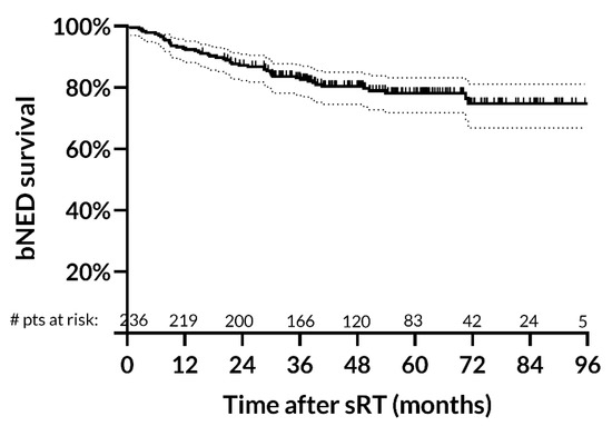 The following supporting information can be downloaded at: https://www.mdpi.com/article/10.3390/cancers15041246/s1, Table S1: Univariable analysis on bNED survival.