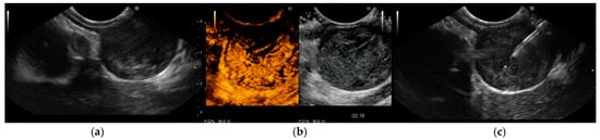 Contrast enhancement is typically evaluated in the early (after a few seconds) and late phases (after more than 30 s), and the enhancement patterns are then classified (as hyper-, iso-, or hypo-enhancement, and as homogeneous or inhomogeneous) along with the features (the presence or absence of regular or irregular intratumoral vessels, and the presence or absence of an unenhanced area) that can be observed after the injection of the contrast medium [44].