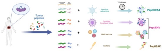 Schematic representing the Pepti-technology used to the rapid development of personalizing oncolytic immunotherapy platforms.