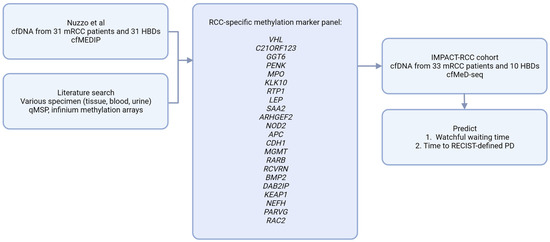 Here, we define an RCC-specific panel of cfDNA methylation markers using the cfDNA methylation profiles described by Nuzzo et al. [12] in conjunction with the already described RCC methylation markers from the literature [13,14,15,16,17,18]. Subsequently, this panel is evaluated in the serum of patients with mRCC who started WW in the context of a prospective study [7], with the aim of exploring whether cfDNA methylation profiling can be used to identify patients at high risk of rapid disease progression.