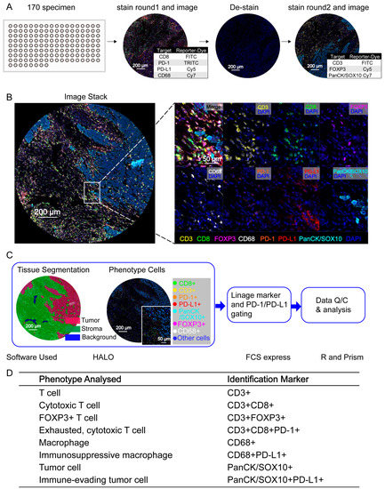 - Taube, J.M.; Akturk, G.; Angelo, M.; Engle, E.L.; Gnjatic, S.; Greenbaum, S.; Greenwald, N.F.; Hedvat, C.V.; Hollmann, T.J.; Juco, J.; et al. The society for immunotherapy of cancer statement on best practices for multiplex immunohistochemistry (ihc) and immunofluorescence (if) staining and validation. J. Immunother. Cancer 2020, 8, e000155. [Google Scholar] [CrossRef] [PubMed]