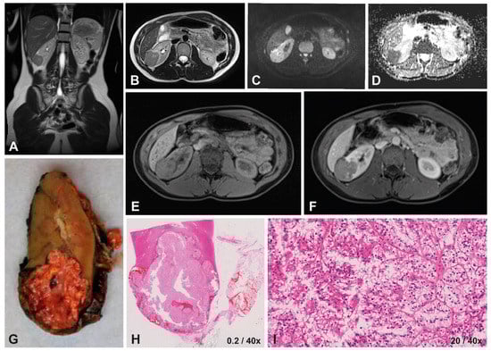 - Lopes Vendrami, C.; Parada Villavicencio, C.; DeJulio, T.J.; Chatterjee, A.; Casalino, D.D.; Horowitz, J.M.; Oberlin, D.T.; Yang, G.Y.; Nikolaidis, P.; Miller, F.H. Differentiation of Solid Renal Tumors with Multiparametric MR Imaging. Radiographics 2017, 37, 2026–2042. [Google Scholar] [CrossRef] [PubMed]