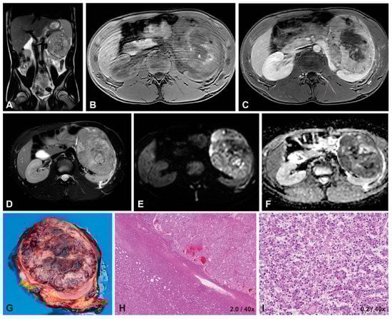 - Chung, E.M.; Lattin, G.E., Jr.; Fagen, K.E.; Kim, A.M.; Pavio, M.A.; Fehringer, A.J.; Conran, R.M. Renal Tumors of Childhood: Radiologic-Pathologic Correlation Part 2. The 2nd Decade: From the Radiologic Pathology Archives. Radiographics 2017, 37, 1538–1558. [Google Scholar] [CrossRef]