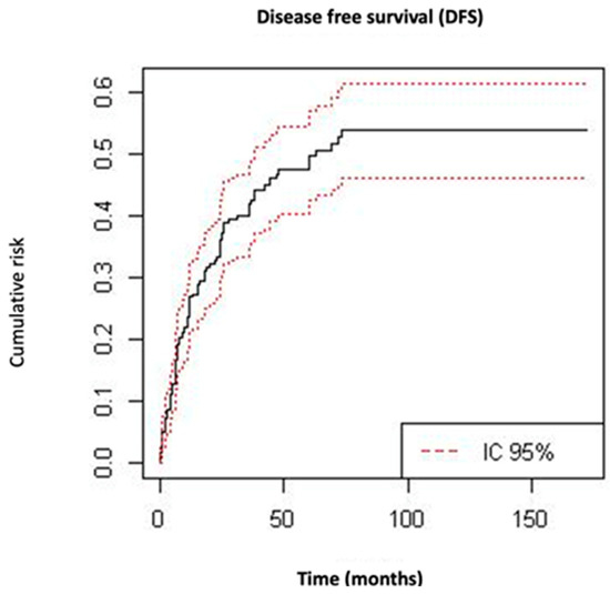 Kaplan–Meier curves for disease-free survival.
