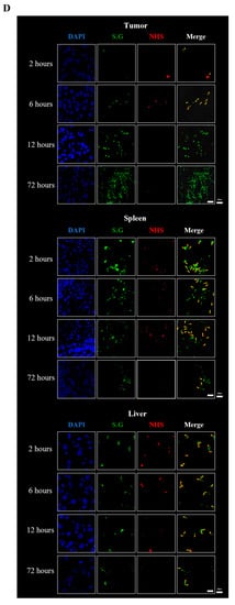 For in vivo analysis, the NHS-conjugated bacteria were injected into CT26-grafted mice through the tail vein (n = 5 per group, 1 × 108 CFU/mouse). To examine bacterial conditions in mice, the tumors, livers, and spleens were excised at the indicated times after bacterial infection and processed for the detection of bacteria and F4/80+ macrophages by confocal microscope.