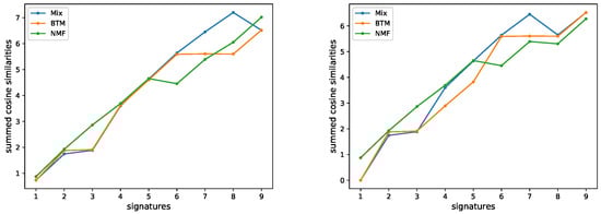 Btm was implemented in Python 3 using numpy [30]. For NMF, we used the scikit-learn implementation [31]. The code for Mix was available at https://github.com/itaysason/Mix-MMM (accesed on 1 January 2022), and the code for CV2K was sourced from https://github.com/GalGilad/CV2K/ (accesed on 1 January 2022).