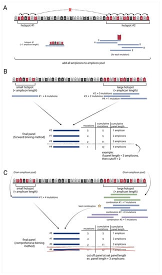 Figure 1. A simplified mechanistic overview of hotspot. (A) Amplicon generation, (B) forward binning algorithm and (C) comprehensive binning algorithm.