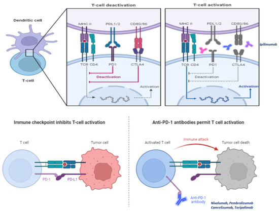 Check-point inhibitors act by removing the so-called “inhibitory brakes”, namely stimuli elicited through particular ligands (CTLA-4 and PD-1 for example) which lead cytotoxic T lymphocytes (CTLs) to anergy. The molecules best known and used in clinical practice are CTLA-4 inhibitors (ipilimumab) and PD-1 inhibitors (nivolumab, pembrolizumab, camtelizumab, and toripalimab).