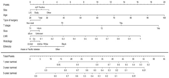 - Yang, H.; Ji, X.; Jin, C.; Ji, K.; Jia, Z.; Wu, X.; Zhang, J.; Bu, Z. A Practical Nomogram for Predicting the Prognosis of Elderly Patients with Gastric Adenocarcinoma After Gastrectomy. Int. J. Gen. Med. 2022, 15, 473–488. [Google Scholar] [CrossRef] [PubMed]