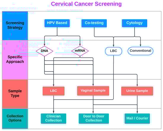 - Hawkes, D.; Keung, M.H.T.; Huang, Y.; McDermott, T.L.; Romano, J.; Saville, M.; Brotherton, J.M.L. Self-Collection for Cervical Screening Programs: From Research to Reality. Cancers 2020, 12, 1053. [Google Scholar] [CrossRef] [PubMed]