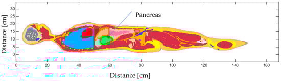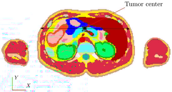 A virtual human model is used to assess the applicability of the proposed human-size, biconical AMF coil for deep-seated tumors. Specifically, computational studies are done for pancreatic cancer. The electric field, magnetic field, non-specific Joule heating SAR, and temperature distributions are calculated for a virtual family (VF) human model Christ et al. [33]. The VF models consist of four highly detailed anatomically correct whole-body models of an adult male, an adult female, and two children. Figure 1 shows a cross-section of a 2 mm resolution VF-Duke model.