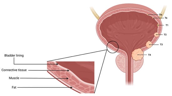 - Magers, M.J.; Lopez-Beltran, A.; Montironi, R.; Williamson, S.R.; Kaimakliotis, H.Z.; Cheng, L. Staging of bladder cancer. Histopathology 2019, 74, 112–134. [Google Scholar] [CrossRef] [PubMed]