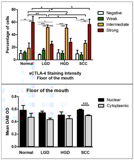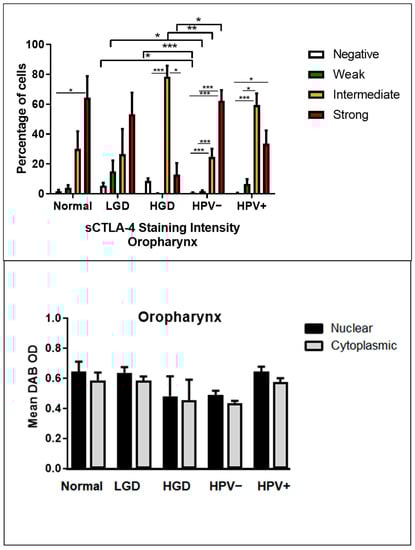 3.2. sCTLA-4 Distribution and Intensity in Oral/Oropharyngeal Epithelia Change with Disease Progression