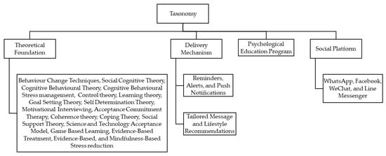 Our taxonomy was classified on the basis of dimensions that could potentially represent the key characteristics of users’ interaction and engagement with the interventions delivered through mobile devices.