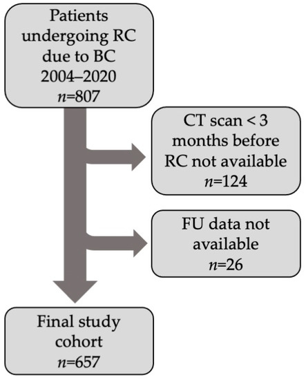 - Stangl-Kremser, J.; Ahmadi, H.; Derstine, B.; Wang, S.C.; Englesbe, M.J.; Daignault-Newton, S.; Chernin, A.S.; Montgomery, J.S.; Palapattu, G.S.; Lee, C.T. Psoas Muscle Mass can Predict Postsurgical Outcomes in Patients Who Undergo Radical Cystectomy and Urinary Diversion Reconstruction. Urology 2021, 158, 142–149. [Google Scholar] [CrossRef] [PubMed]