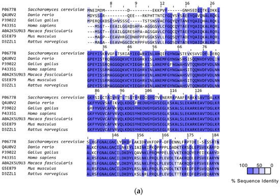 Multiple alignments of RAD52 sequences. (a) Alignment of N-terminal and (b) C-terminal domain sequences of different organisms. In contrast to the N-terminal domain, the C-terminal domain is not conserved.