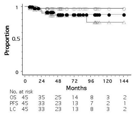 | Ogawa [20] | 72 | I/II | 44/16 + 9/3 | 100 (5 y) | 97.1 (5 y) | 97.1 (5 y) |