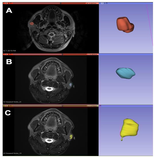 - Song, L.; Chen, S.; Chen, W.; Shi, Z.; Wang, X.; Song, L.; Chen, D. Radiomic model for differentiating parotid pleomorphic adenoma from parotid adenolymphoma based on MRI images. BMC Med. Imaging 2021, 21, 54. [Google Scholar] [CrossRef] [PubMed]