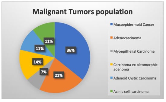 - Peravali, R.K.; Bhat, H.H.; Upadya, V.H.; Agarwal, A.; Naag, S. Salivary gland tumors: A diagnostic dilemma! J. Maxillofac. Oral Surg. 2015, 14 (Suppl. S1), 438–442. [Google Scholar] [CrossRef] [PubMed]