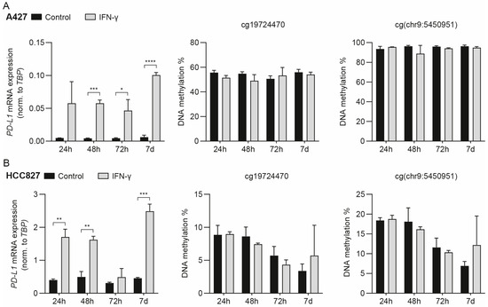 3.2. IFN-γ-Mediated Induction of PD-L1 mRNA Expression Does Not Drive Concomitant DNA Methylation Changes