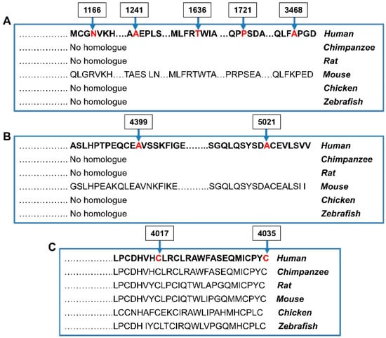 | MMD-25 | M | c.13195G>A (p.Ala4399Thr) | C-term | B/P/- | 8 × 10−3 | 1 × 10−3 |