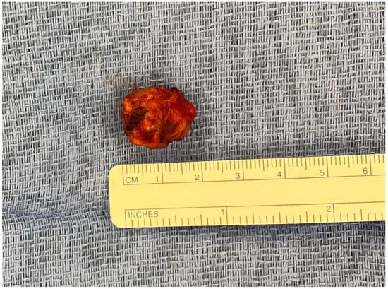 Surgical management of insulinomas can often be achieved via pancreas-sparing procedures []. Given symptoms, surgical exploration should be considered for all patients with resectable disease regardless of size after efforts at tumor localization []. Preoperative localization may require the use of endoscopic ultrasound in addition to cross-sectional imaging. In the particular case of MEN1, due to a high rate of multifocal disease, it is important to identify insulin-producing lesions preoperatively in an effort to spare pancreatic parenchyma, as all PNETs may not be insulin-secreting []. The majority of insulinomas are benign [], and extensive lymph node dissection is not indicated. As a result, parenchyma-preserving enucleation is preferred if possible. Enucleation involves removal of just the tumor and associated capsule, otherwise sparing normal parenchyma (Figure 3). This is particularly applicable to small, benign, superficial tumors, but less possible for tumors with abutment of the main pancreatic duct or deeper in the pancreatic parenchyma. This approach is associated with improved postoperative outcomes compared to resection in patients with small PNETs (mean 2.3 cm) []. Minimally invasive enucleation has also been associated with lower perioperative morbidity than the open approach []. However, enucleation has also been associated with is an increased risk of postoperative pancreatic fistula formation, and careful attention must be given to the relationship between an insulinoma and the pancreatic duct []. Implementation of laparoscopic ultrasound has been useful for intraoperative localization, especially for smaller insulinomas, multiple lesion exclusion, and identification of the main pancreatic duct [].