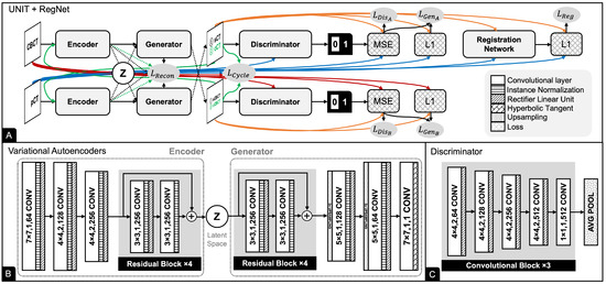 where , , and are the weights for cycle loss, reconstruction loss, registration loss and smoothing loss, respectively.