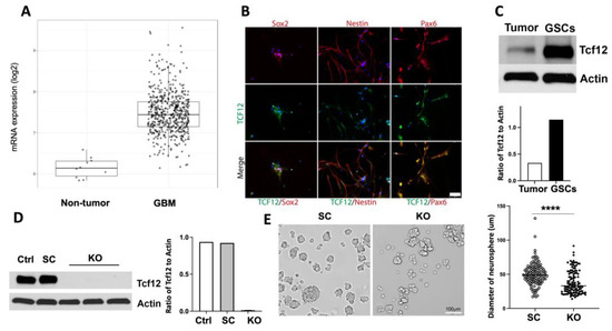 3.1. Tcf12 Is Upregulated in Human GBM Cells and Is Highly Expressed in Enriched GSCs