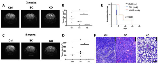 3.4. TCF12 Loss Slows Tumor Growth In Vivo and Improves Animal Survival