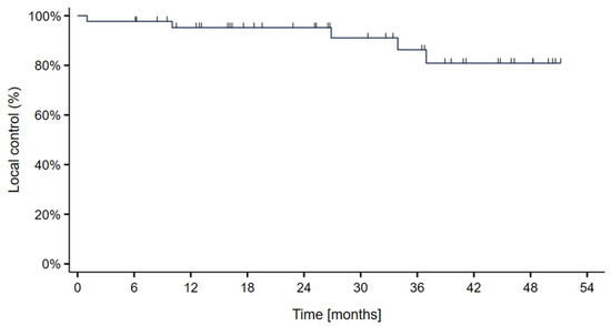 Figure 2. Kaplan–Meier curve showing the local control probability in 44 skull-base chordoma patients treated with particle therapy at MedAustron.