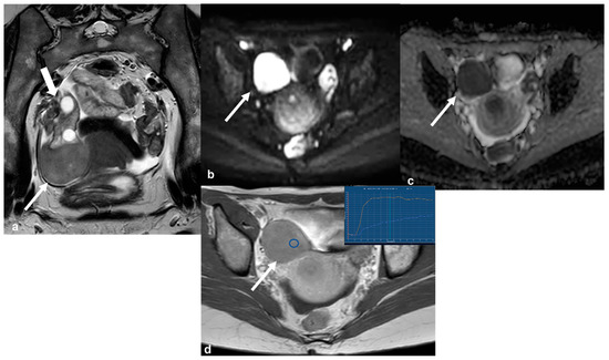 - Bonde, A.; Andreazza Dal Lago, E.; Foster, B.; Javadi, S.; Palmquist, S.; Bhosale, P. Utility of the Diffusion Weighted Sequence in Gynecological Imaging: Review Article. Cancers 2022, 14, 4468. [Google Scholar] [CrossRef]