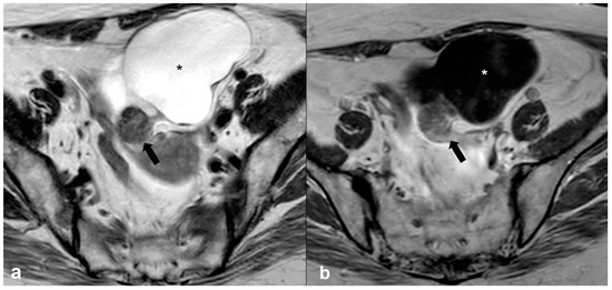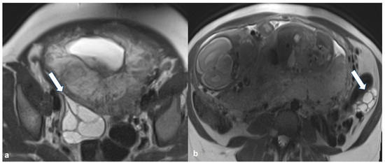 - Takeuchi, M.; Matsuzaki, K.; Nishitani, H. Magnetic Resonance Manifestations of Decidualized Endometriomas During Pregnancy. J. Comput. Assist. Tomogr. 2008, 32, 353–355. [Google Scholar] [CrossRef] [PubMed]