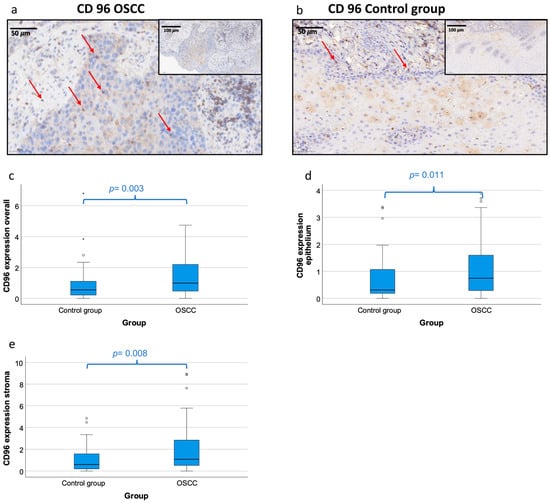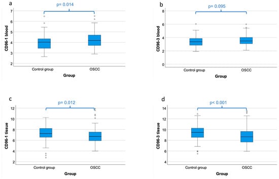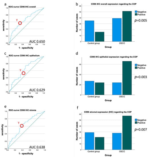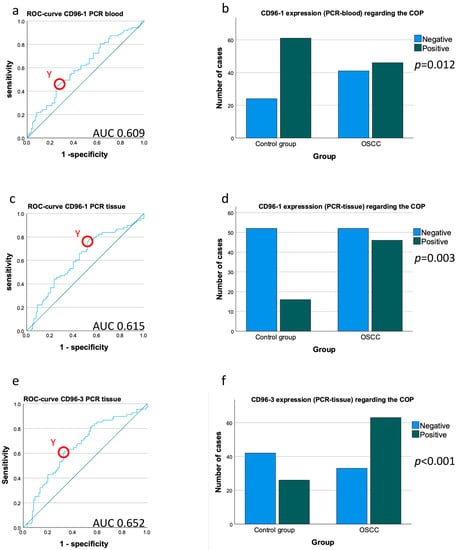 4.4. Comparison of CD96 Expression in Tissue Samples between OSCC Patients and Healthy Controls