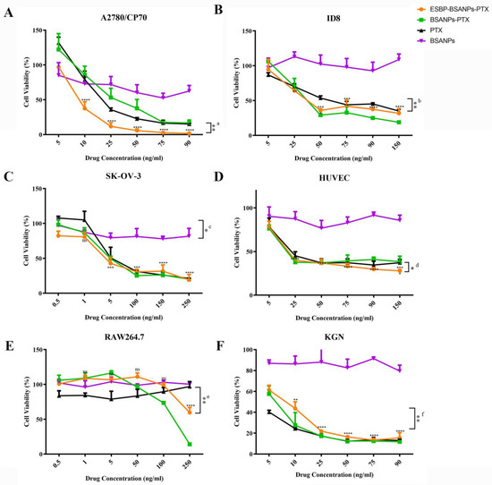 3.2. Higher Cell Cytotoxicity of ESBP-BSANPs-PTX than Free PTX