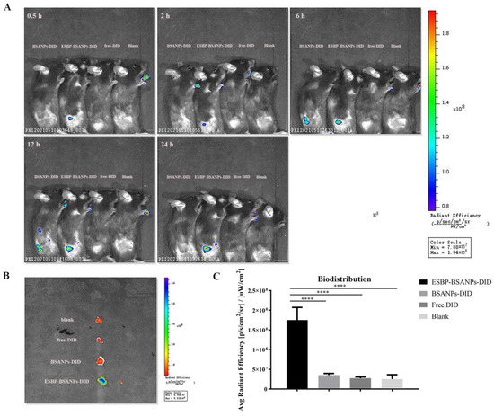3.4. ESBP-BSANPs Sucessfully Targeted Tumor Sites In Vivo