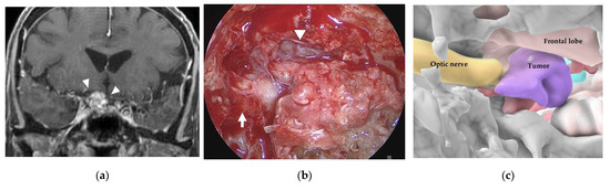 - Inoue, A.; Suehiro, S.; Ohnishi, T.; Nishida, N.; Takagi, T.; Nakaguchi, H.; Miyake, T.; Shigekawa, S.; Watanabe, H.; Matsuura, B.; et al. Simultaneous combined endoscopic endonasal and transcranial surgery for giant pituitary adenomas: Tips and traps in operative indication and procedure. Clin. Neurol. Neurosurg. 2022, 218, 107281. [Google Scholar] [CrossRef]