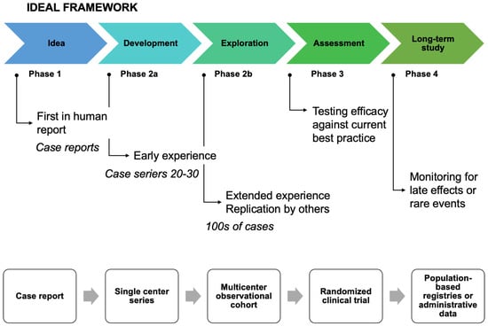 - Dimick, J.B.; Sedrakyan, A.; McCulloch, P. The IDEAL Framework for Evaluating Surgical Innovation: How It Can Be Used to Improve the Quality of Evidence. JAMA Surg. 2019, 154, 685–686. [Google Scholar] [CrossRef] [PubMed]