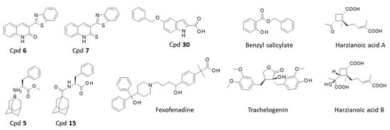 | Benzyl salicylate Fexofenadine (synthetic products) | None | Weak binding to EC2-CD80 characterized by NMR spectroscopy. | [150] |