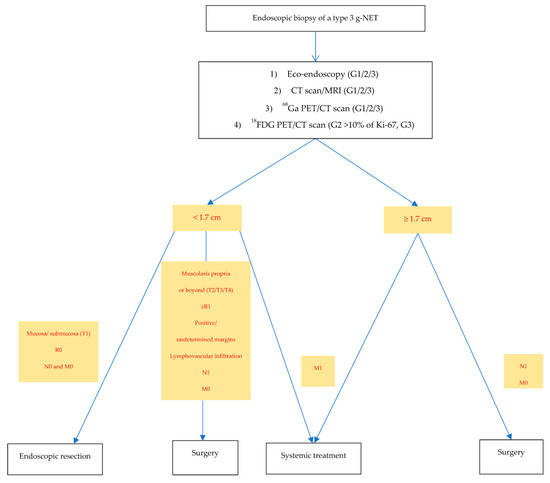 - Exarchou, K.; Kamieniarz, L.; Tsoli, M.; Victor, A.; Oleinikov, K.; Khan, M.S.; Srirajaskanthan, R.; Mandair, D.; Grozinsky-Glasberg, S.; Kaltsas, G.; et al. Is local excision sufficient in selected grade 1 or 2 type III gastric neuroendocrine neoplasms? Endocrine 2021, 74, 421–429. [Google Scholar] [CrossRef]
