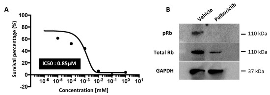 3.1. Palbociclib Inhibits the Phosphorylation of Rb and Promotes Cell Cycle Arrest in Triple Negative Breast Cancer Cell Lines