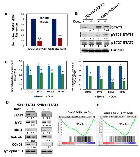 3.1. Doxycycline-Inducible STAT3 shRNA Decreases Endogenous STAT3 and STAT3 Targets