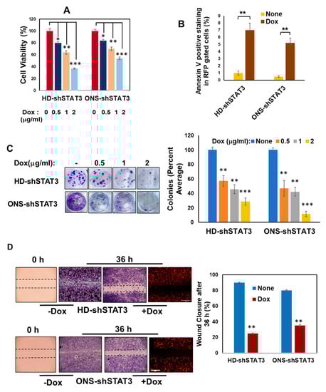 3.2. STAT3 KD Affects Cell Viability, Apoptosis, Cell Growth and Migration