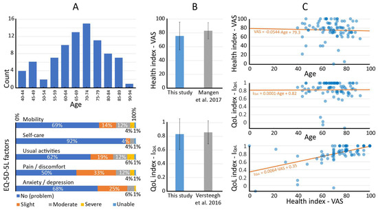 - Mangen, M.J.; Bolkenbaas, M.; Huijts, S.M.; van Werkhoven, C.H.; Bonten, M.J.; de Wit, G.A. Quality of life in community-dwelling Dutch elderly measured by EQ-5D-3L. Health Qual. Life Outcomes 2017, 15, 3. [Google Scholar] [CrossRef] [PubMed]