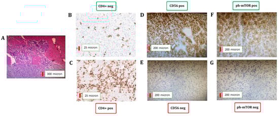 The identification of clinical and tumor factors to identify patients who most benefit from oncological treatments is a crucial clinical unmet need. We studied differences in the tumor microenvironment assessed using an easy method called immunohistochemistry between cancers in patients who did or did not respond to an immunotherapy called nivolumab. The tumors in those patients who most benefitted from nivolumab were characterized by the following: a poor presence of specific immune cells (CD4+), which are likely to have an immunosuppressive role; a high expression of the CD56 marker on tumor cells, which plays a role in cell cytotoxicity; and a high expression of the phosphorylated form of the mTOR protein in tumor cells, which regulates the function of intra-tumor inflammatory cells and cancer cells. Further immunohistochemical and genomic analyses are planned to deeply examine the prognostic role of the tumor microenvironment.