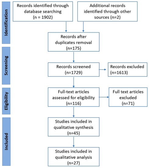 - Moher, D.; Liberati, A.; Tetzlaff, J.; Altman, D.G.; Group, P. Preferred reporting items for systematic reviews and meta-analyses: The PRISMA statement. BMJ 2009, 339, b2535. [Google Scholar] [CrossRef]