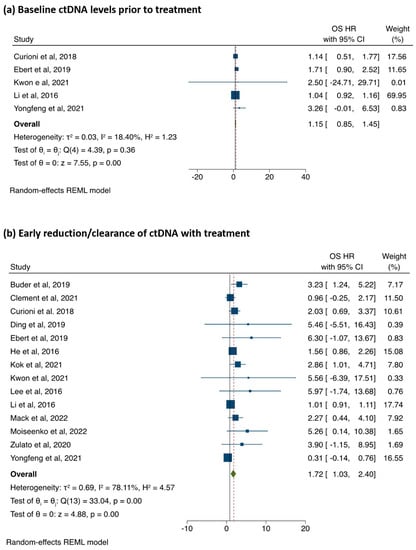 APA StyleZaman, F. Y., Subramaniam, A., Afroz, A., Samoon, Z., Gough, D., Arulananda, S., & Alamgeer, M. (2023). Circulating Tumour DNA (ctDNA) as a Predictor of Clinical Outcome in Non-Small Cell Lung Cancer Undergoing Targeted Therapies: A Systematic Review and Meta-Analysis. Cancers, 15(9), 2425. https://doi.org/10.3390/cancers15092425